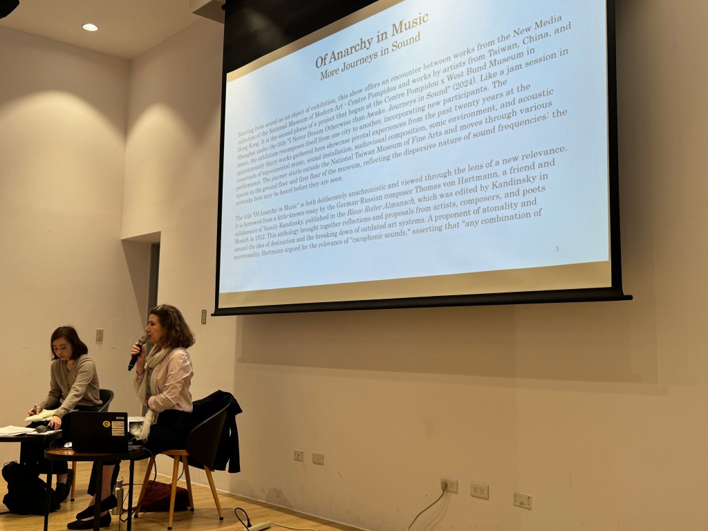 This morning, I found myself quietly observing ancient artifacts while friends around me sketched. At noon, I stepped into the contemporary—a curator’s sharing session at the National Taiwan Museum of Fine Arts, featuring a French curator whose presentation unfolded entirely in English, with thoughtful pauses for interpretation.