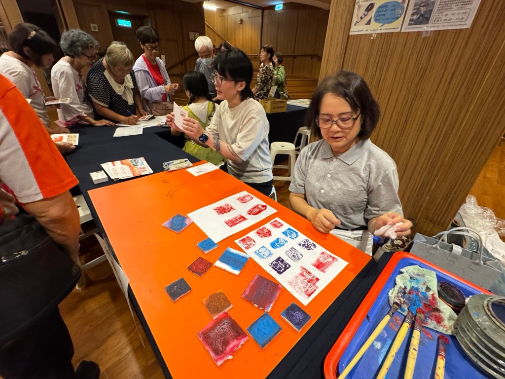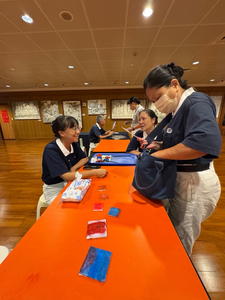When we first arrived at the venue to set up, preparations were a bit hectic. Fortunately, with the assistance of Tzu Chi volunteers, everything soon came together smoothly. Our booth quickly became the most popular one of the day, as many participants were eager to experience printmaking.