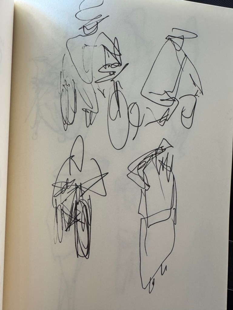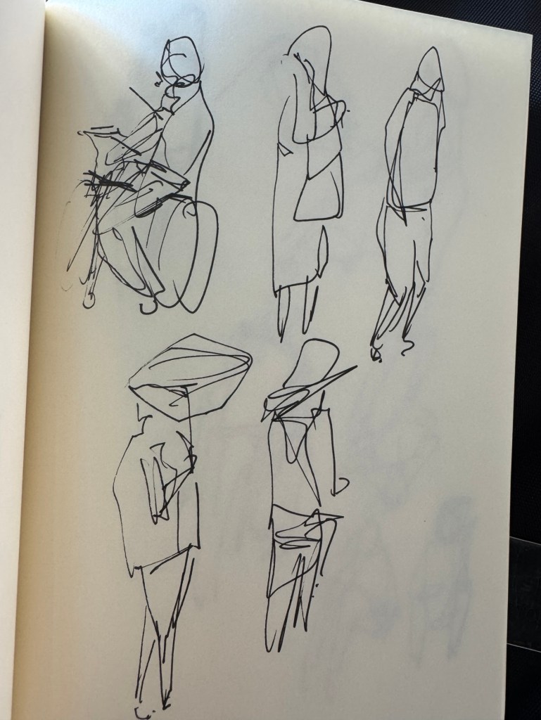 今天是高雄文化局展覽的第四天,我到文化中心顧攤。無聊之際自己拿著速寫本出來速寫動態及靜態的人物 速寫當中需仔細…
